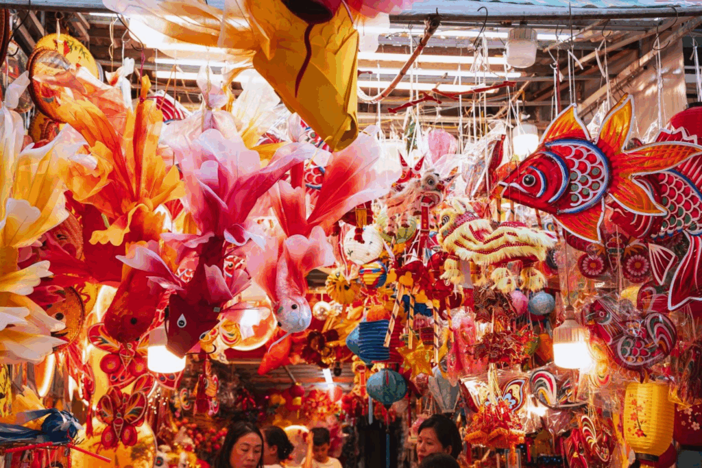 As the evening deepens, Hang Ma becomes alive with movement – bustling crowds, glowing colors, and the rhythm of lion dances echoing down the narrow streets. Local artisans proudly present traditional crafts, preserving the beauty and heritage of Vietnam’s festive culture.