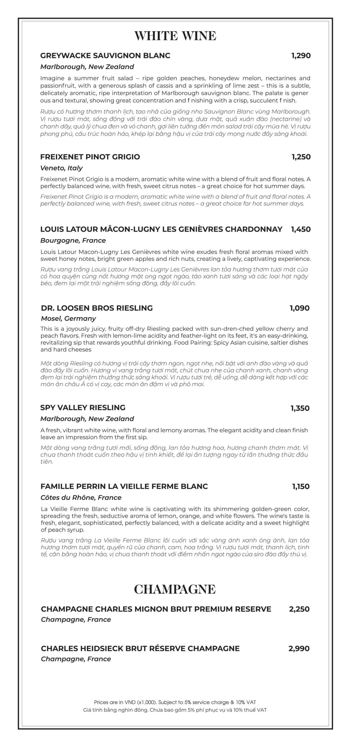 (Please note that promotional set menu prices DO NOT apply on public holidays, Tet, or during special occasions.).